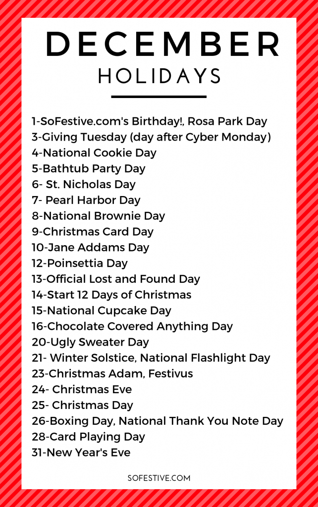 December Holiday Ideas – Quick Comparison Chart