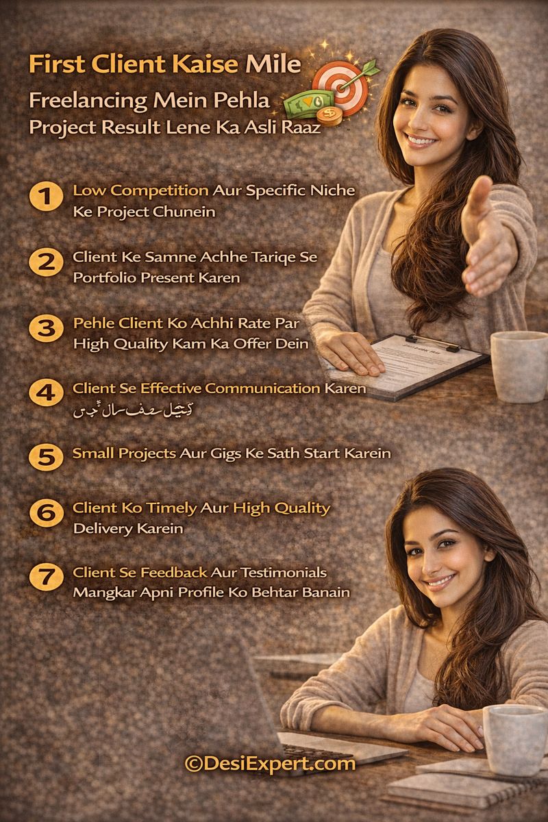 - First Client Kaise Mile: Portfolio aur proposal likhne ke smart tips.